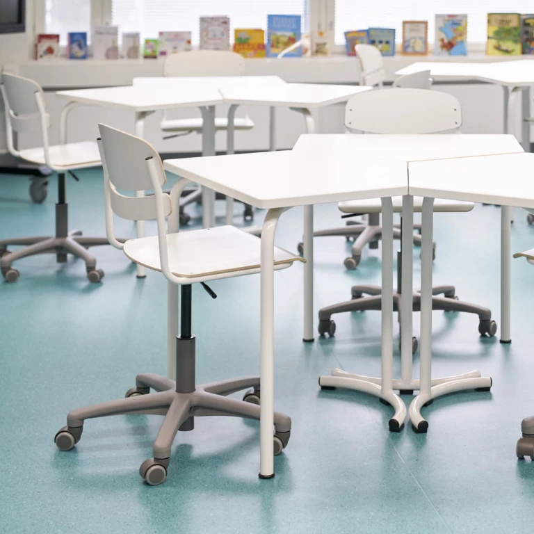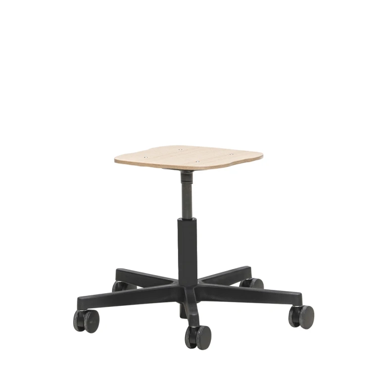 Mac darba krēsla sēdeklis un atzveltne ir izgatavota no lamināta, koka-plastmasas kompozīta vai pārstrādājama polipropilēna bordo krāsā. Augstumu var noregulēt