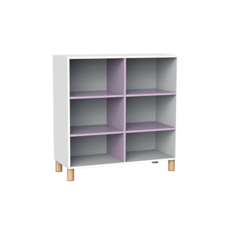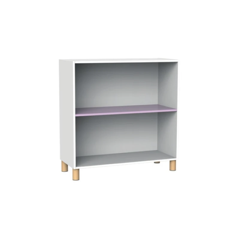 Pie sienas stiprināms plaukts ar diviem nodalījumiem. Ārējais rāmis baltā vai dižskābarža krāsā. Iekšējie plaukti pieejami dažādās lamināta toņa apdarēs
