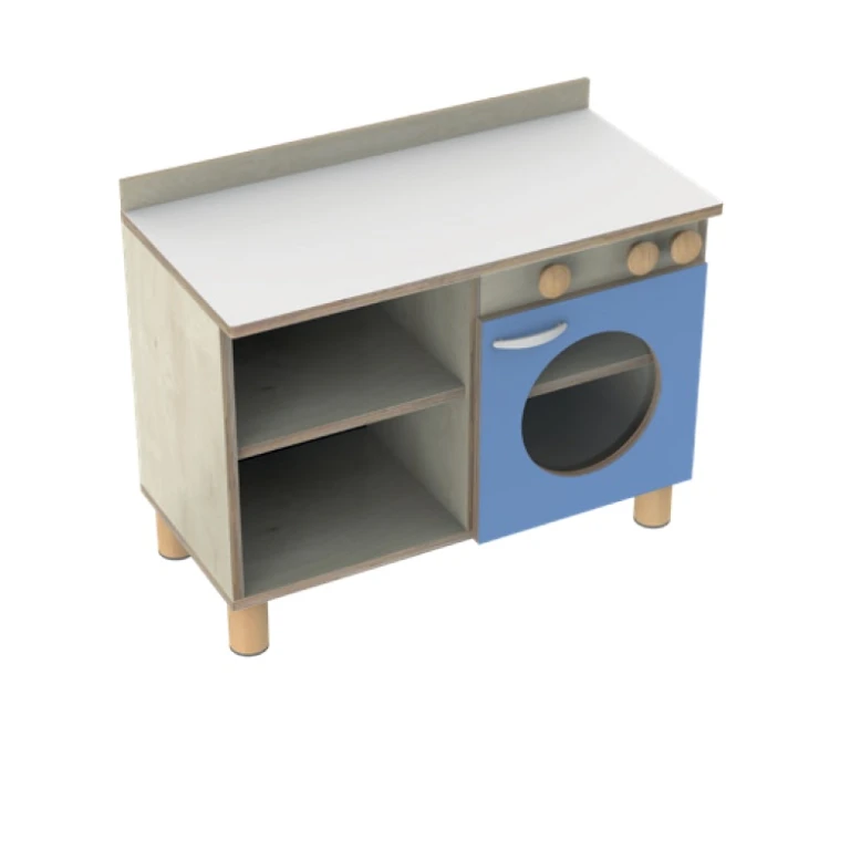 Pie sienas stiprināms statīvs zīmēšanai, ar diviem plauktiņiem piederumiem. Aprīkots ar koka stangu papīra rullim. Pieejams baltā vai dižskābarža tonī.