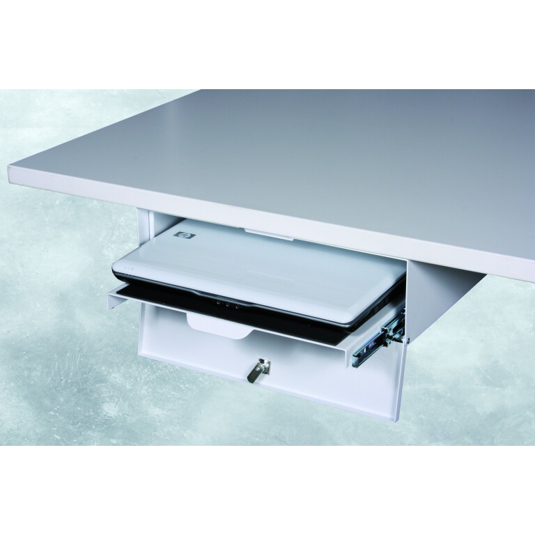 Izvelkama metāla atvilktne ar izvelkamu plauktu un slēdzeni. Dziļumā vieta kabeļiem. Paredzēta uzstādīšanai zem rakstāmgalda, lieliski piemērota klēpjdatoriem vai citām