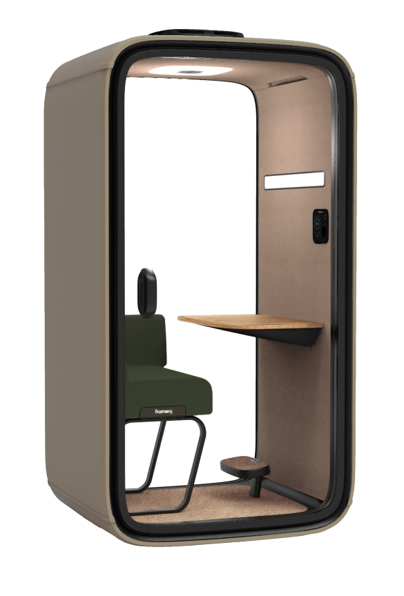 Framery One ir jaunākās paaudzes akustiskā kabīne ar augstāko skaņas izolāciju tirgū, paredzēta individuālam darbam un aprīkota ar jaunākajām tehnoloģijām.