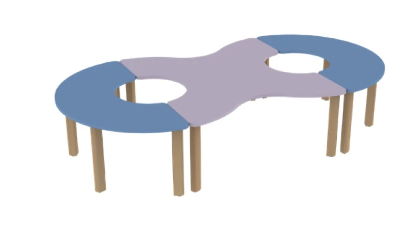 Iesakām to kombinēt ar citu formu galdiem, lai veidotu grupu darba “salas”.