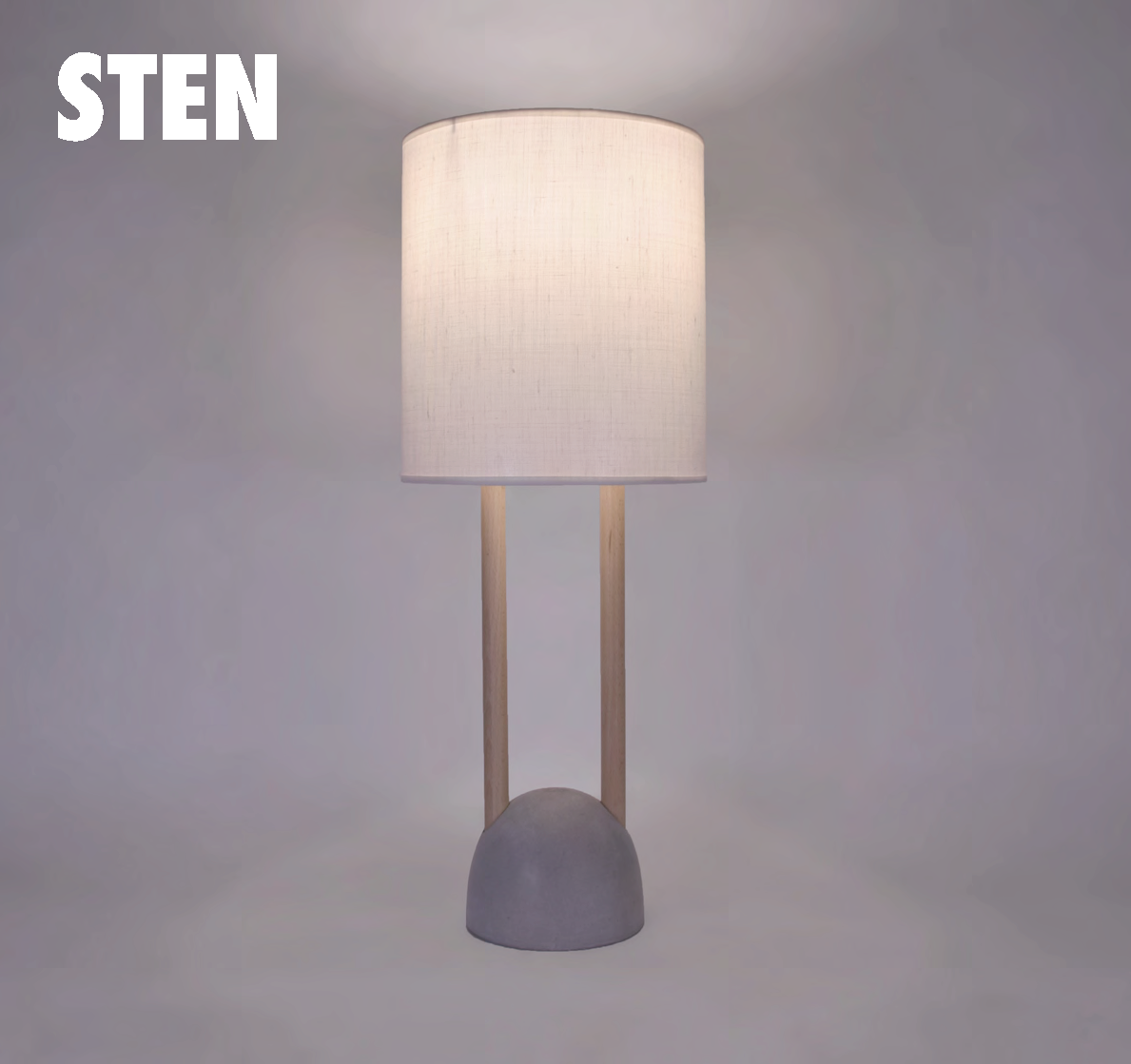 Galda lampa Stena balstās uz betona pamatnes. Statīvs izgatavots no koka. Spuldzīte – E27 max 40W 230V (nav iekļauta komplektā).