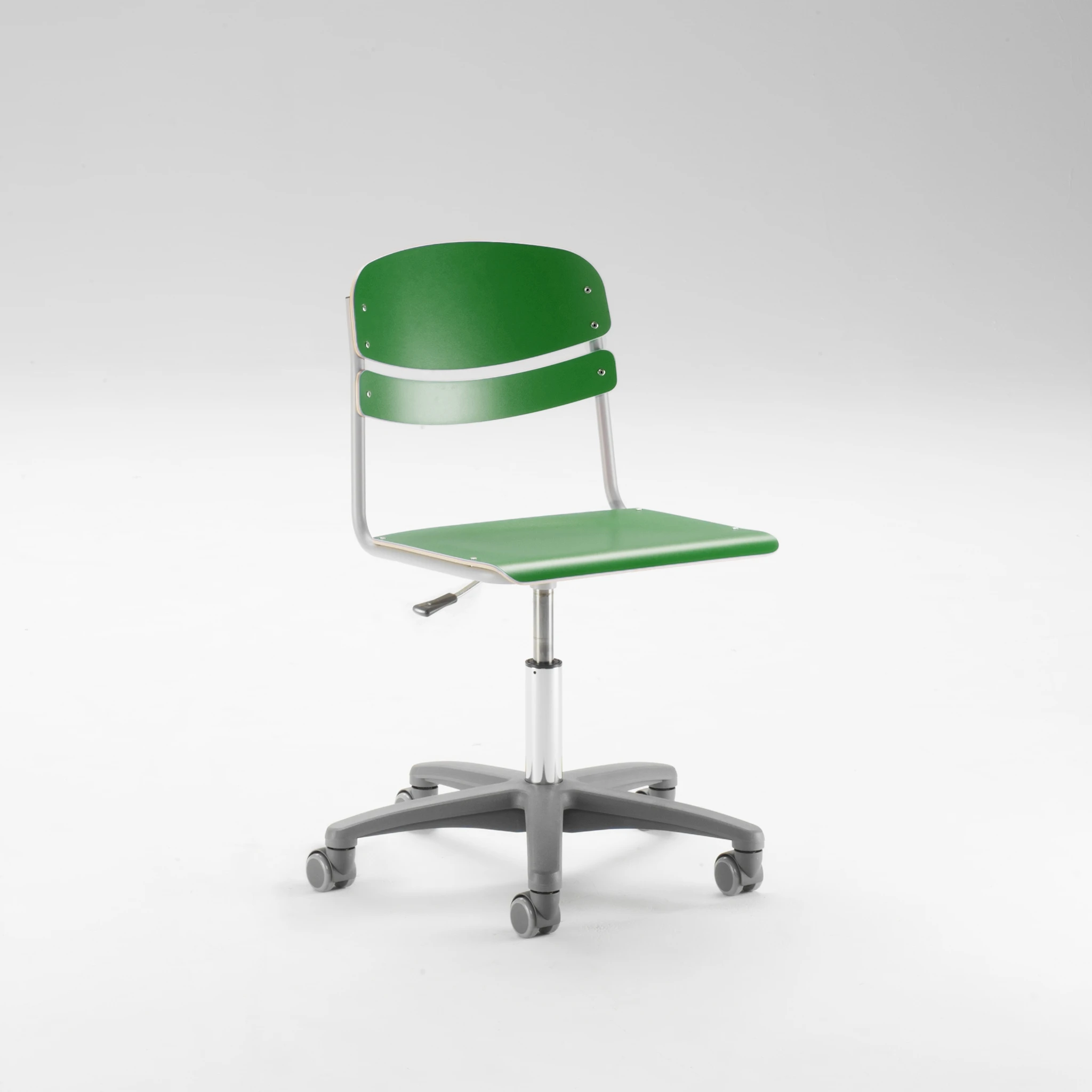 Mac darba krēsla sēdeklis un atzveltne ir izgatavota no lamināta, koka-plastmasas kompozīta vai pārstrādājama polipropilēna bordo krāsā. Augstumu var noregulēt ar gāzes atsperi. Krēsls ir pieejams ar ritenīšiem vai rotējošiem paliktņiem.