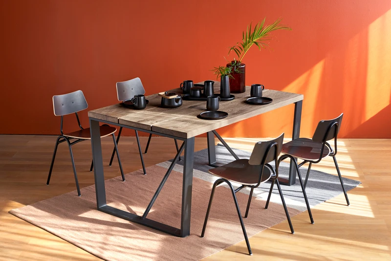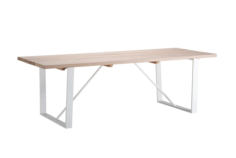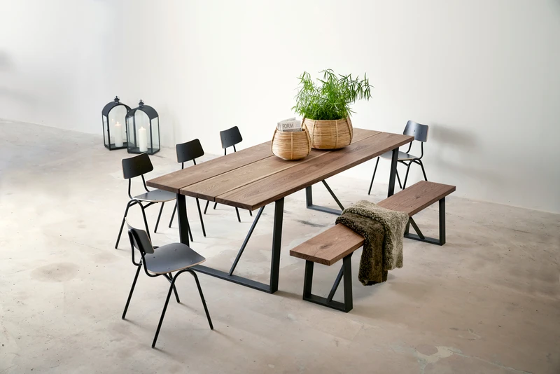 Ēdamgalds Old Oak. Sastāv no trīs ozola masīvkoka dēļiem – viena dēļa platums ir 31 cm, tādēļ galds jebkurā komplektācijā ir 95 cm dziļš.