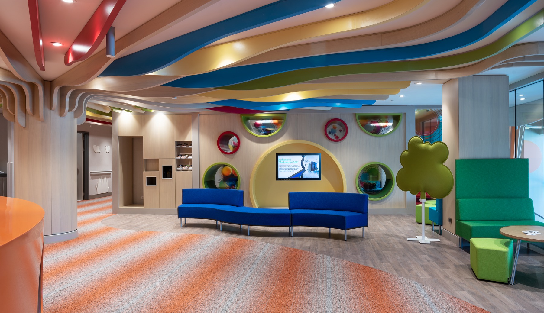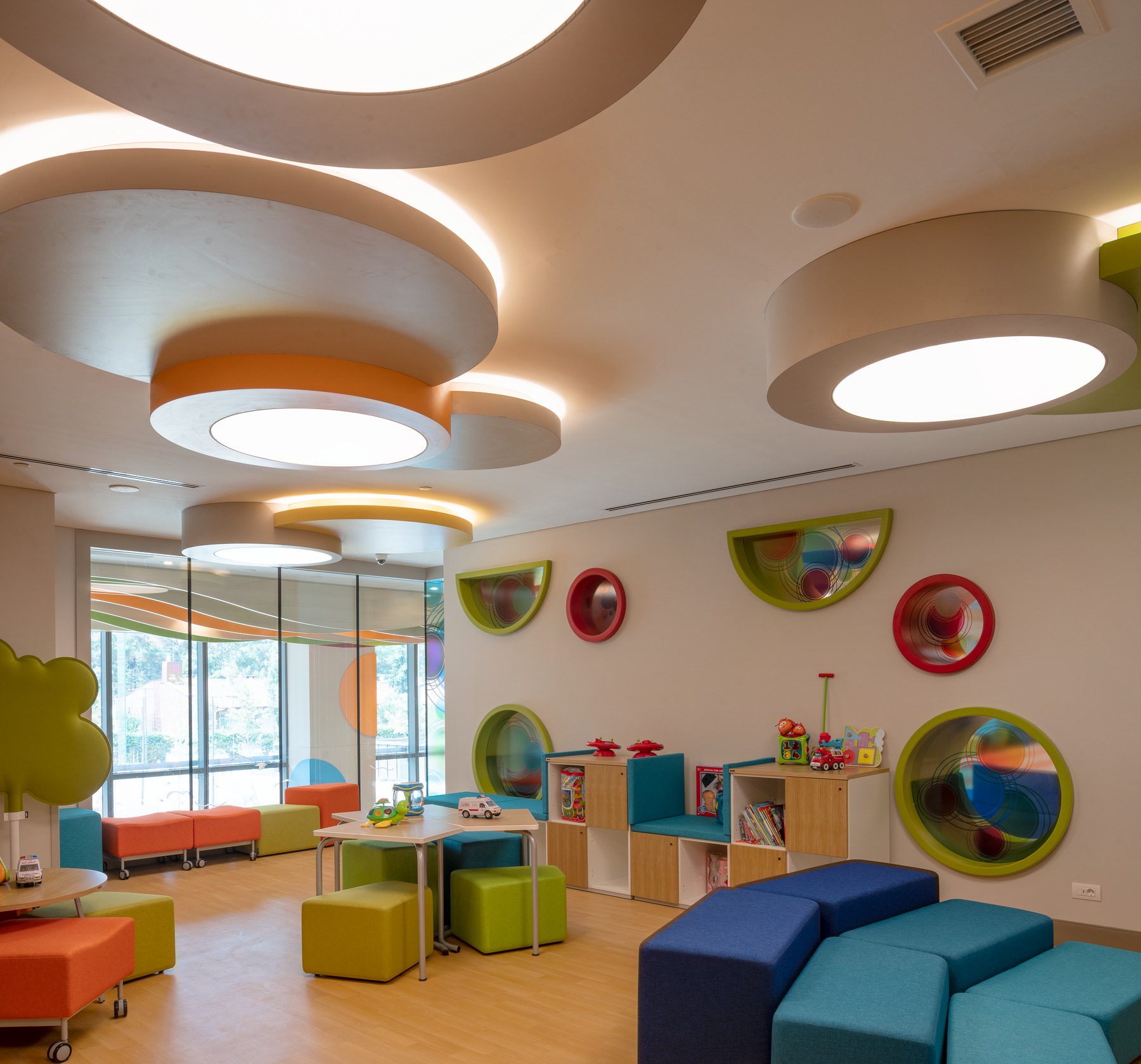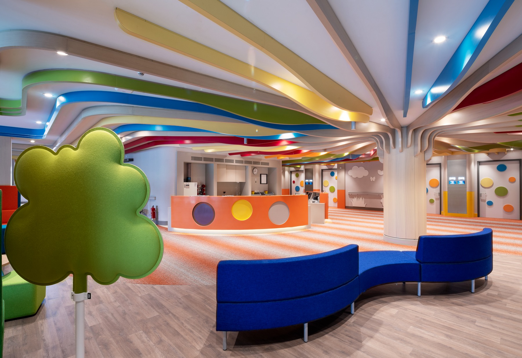 Slimnīcas bērnu nodaļas dizains izvēlēts krāsains, lai mazajiem uzlabotu slimnīcas apmeklējuma pieredzi. Bērnu nodaļas vestibils ir sadalīts divās daļās, lai mazinātu infekcijas riskus: viena daļa paredzēta veseliem bērniem, bet otra – slimiem bērniem.