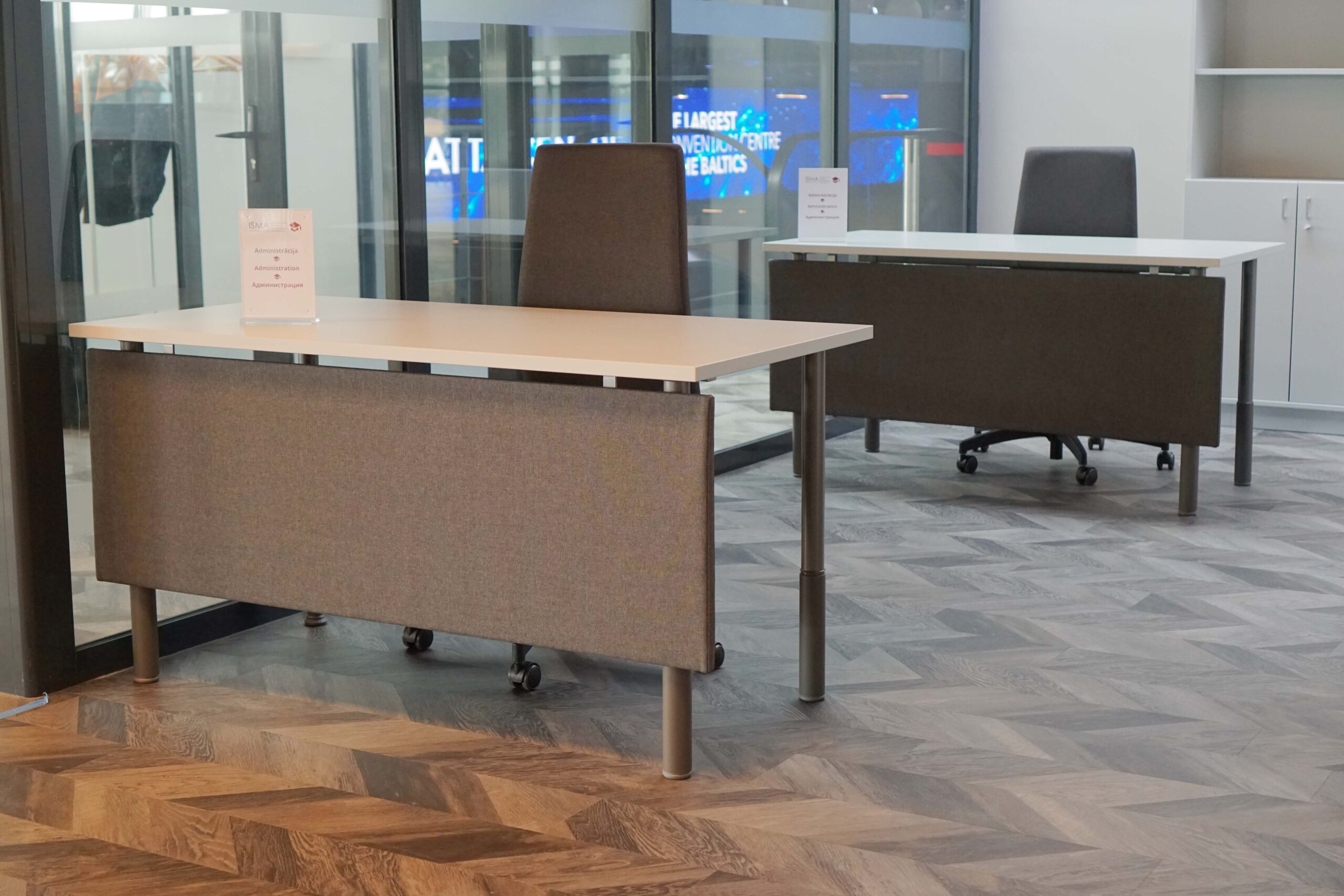 Informācijas sistēmu menedžmenta augstskolas telpas Rīgā, ATTA centrā tika iekārtotas kā atvērtā tipa birojs. Nelieli galdi ar paneļiem kombinācijā ar mīkstajām mēbelēm, studentiem un darbiniekiem ļauj mainīt pozīcijas, atkarībā no veicamajiem darba uzdevumiem.