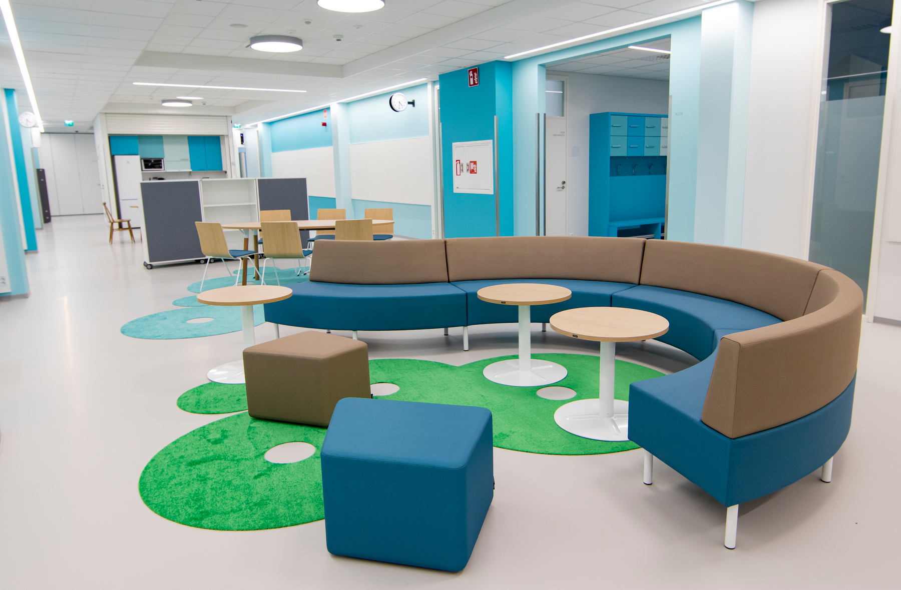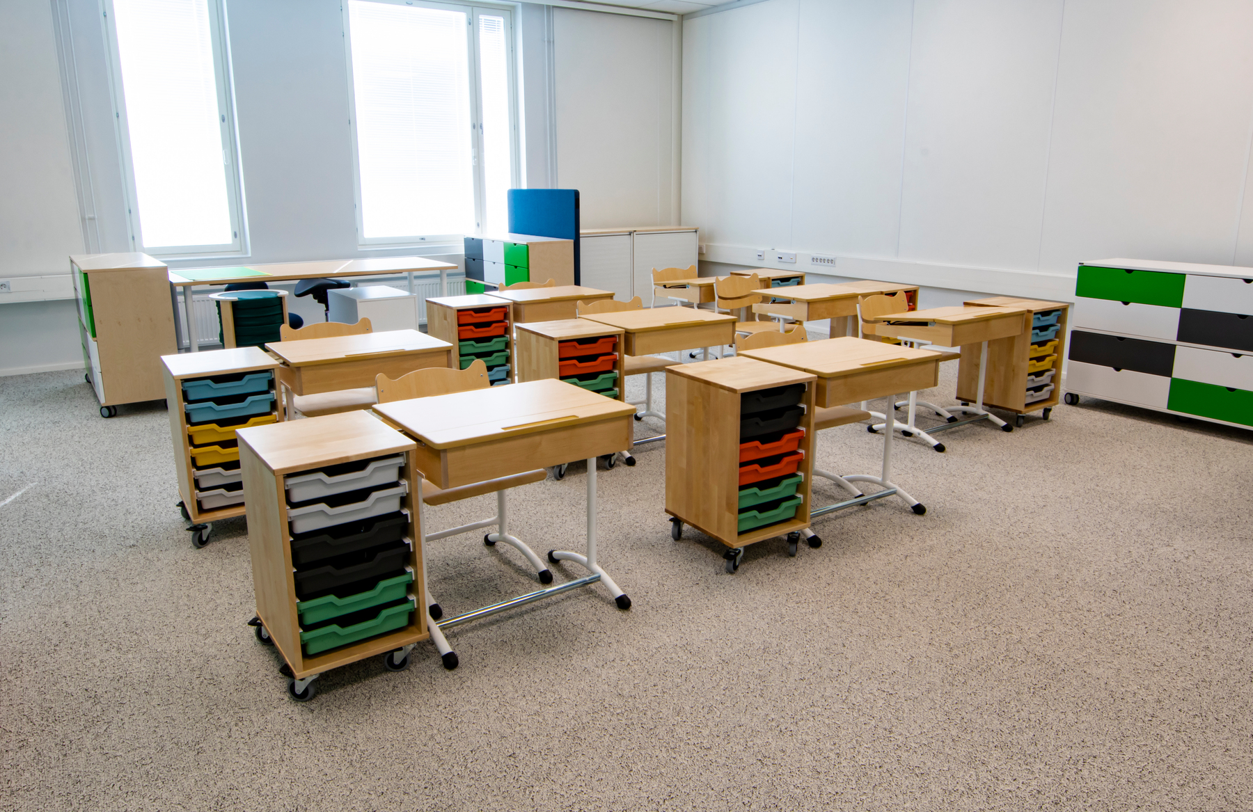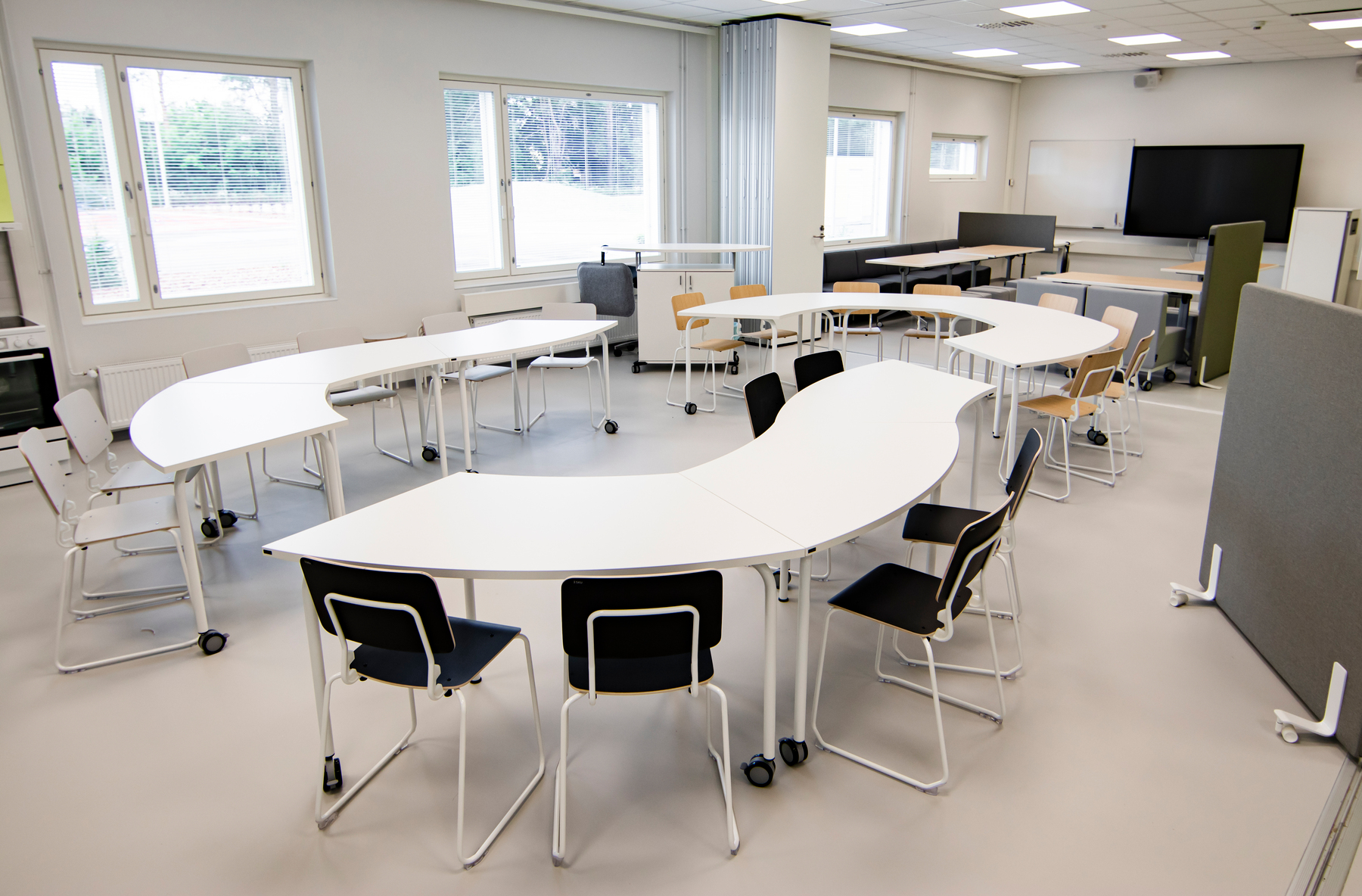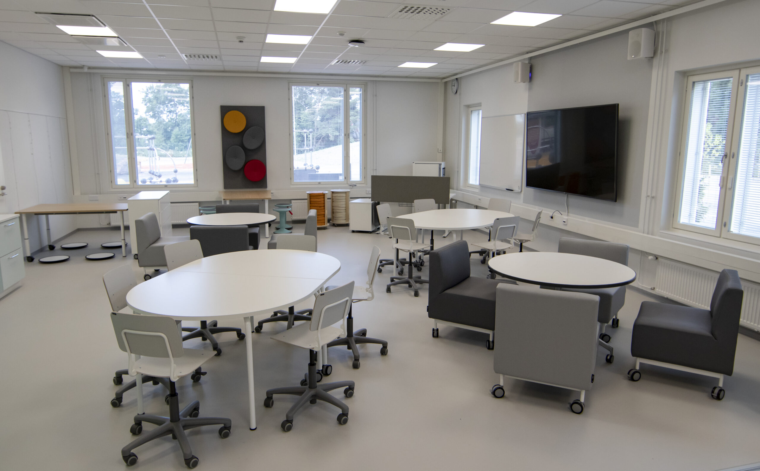 Skolas ēkas jaunā mācību vide un darbības kultūra veicina mācīšanu sadarbībā.
