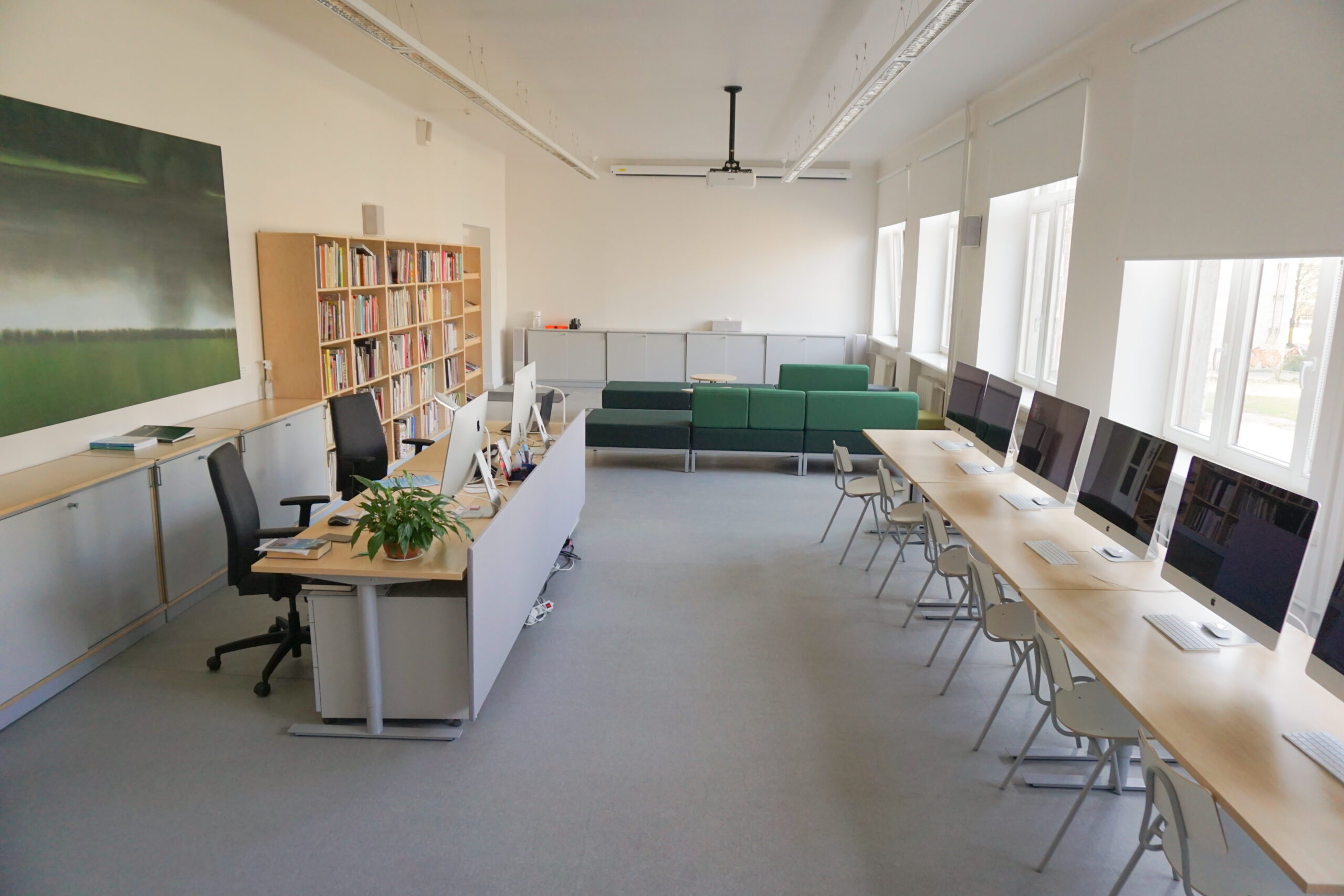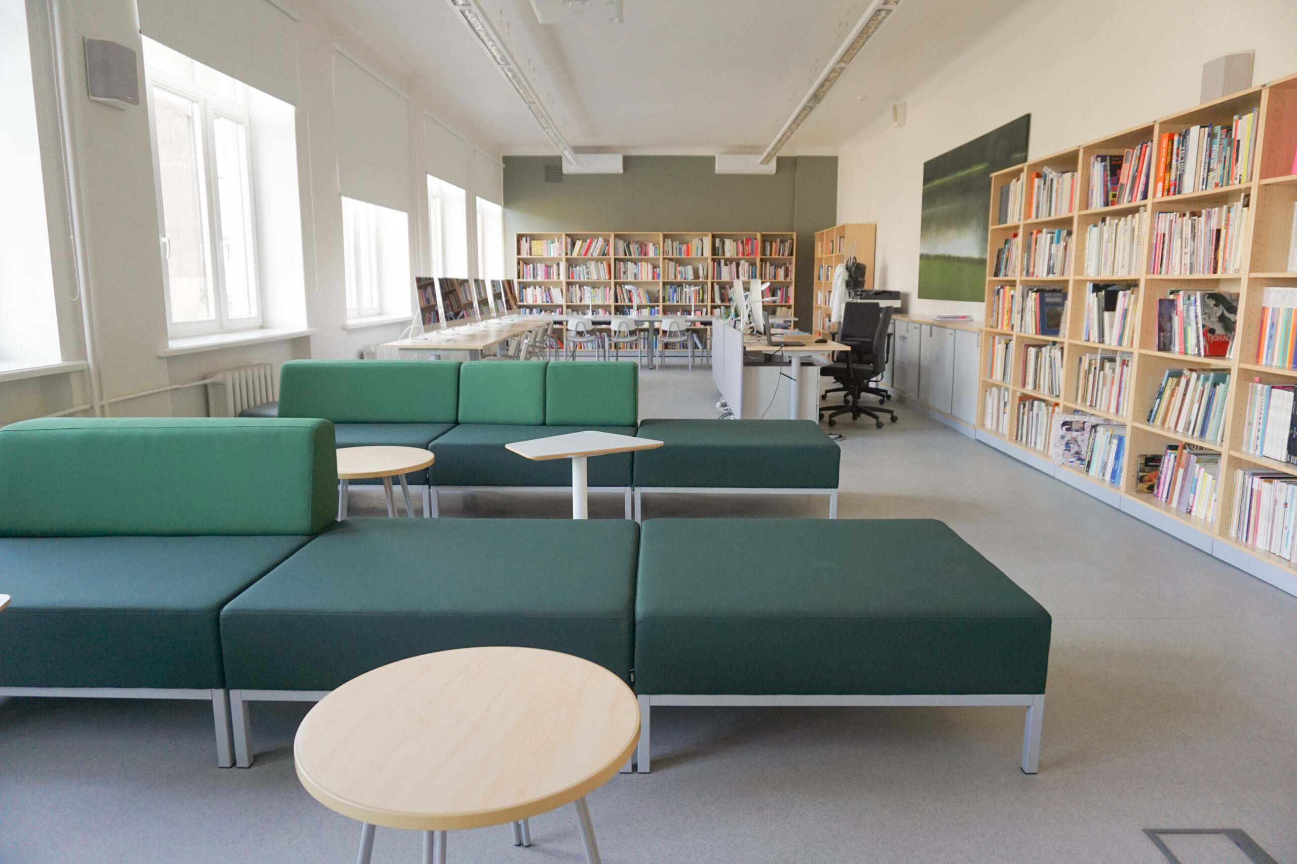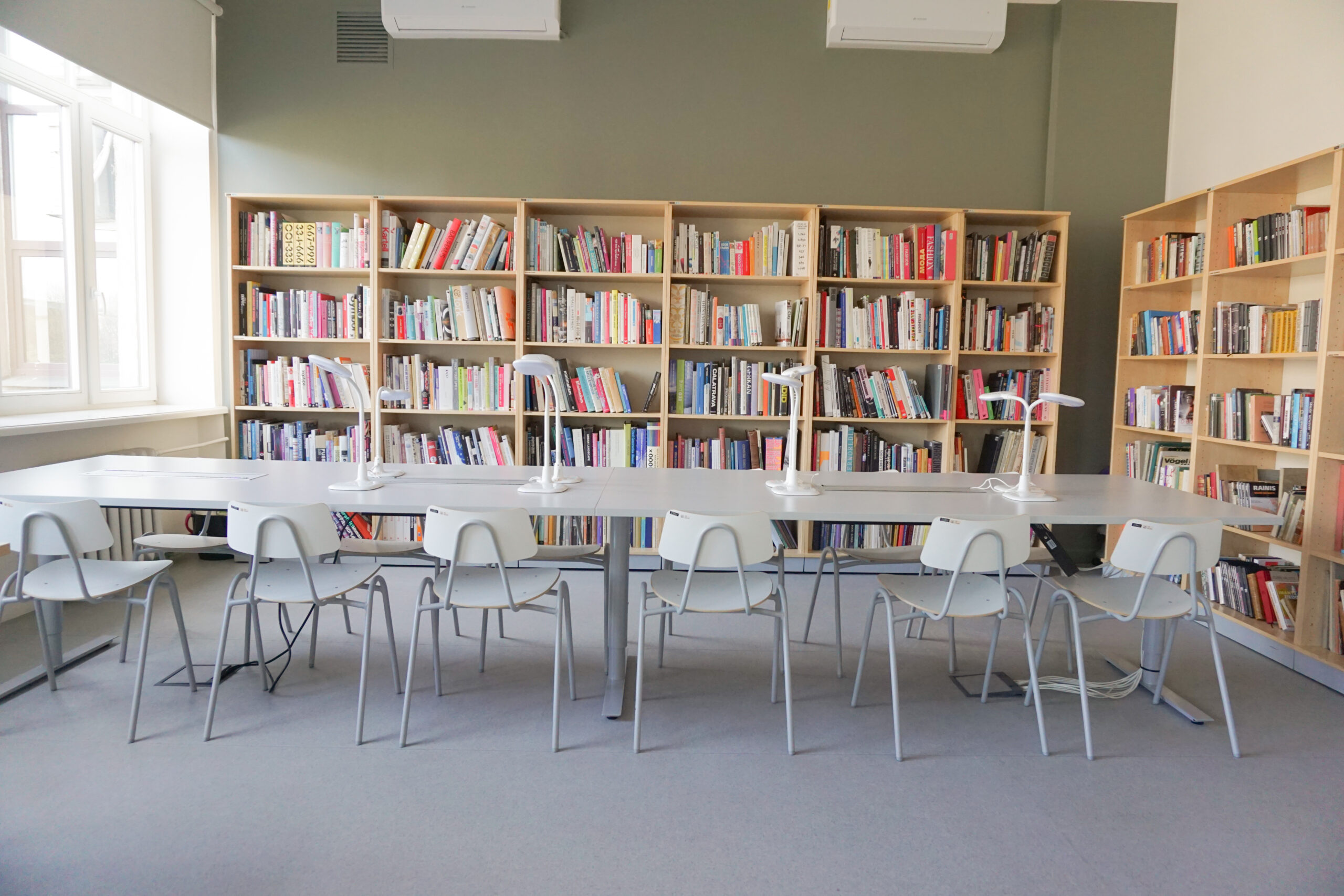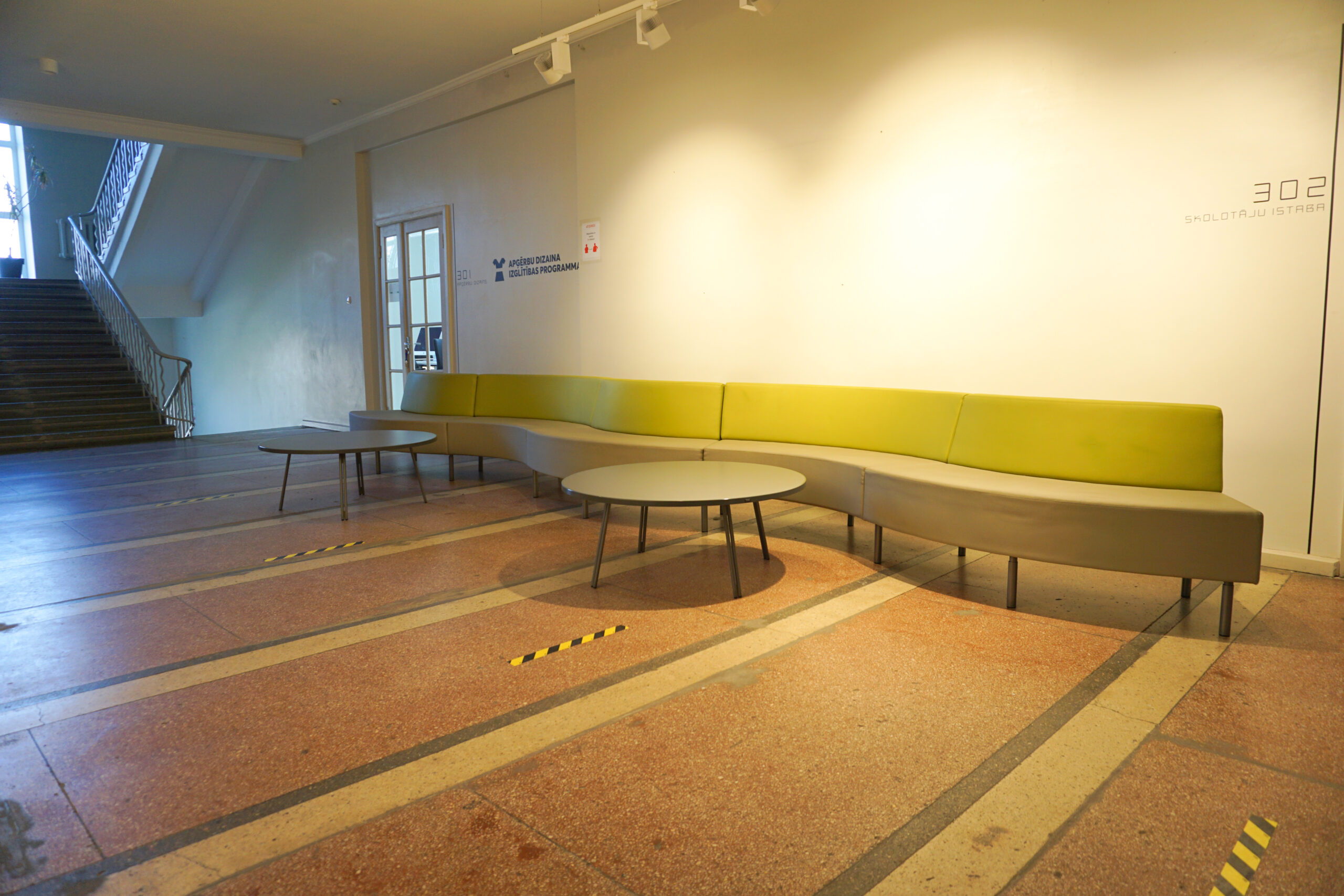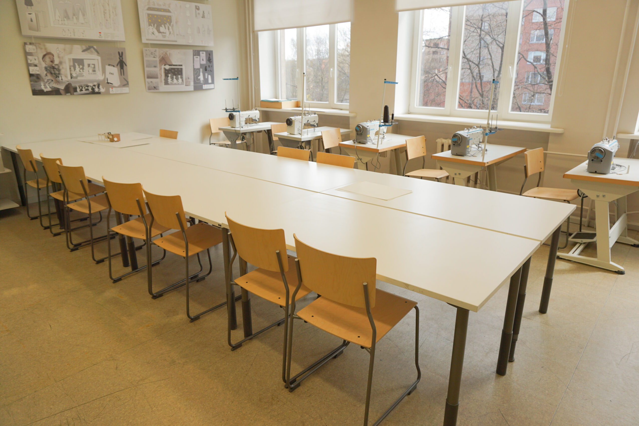 Rīgas Dizaina un mākslas vidusskolā iekārtotas mācību telpas, koridori, bibliotēka un administrācijas telpas.