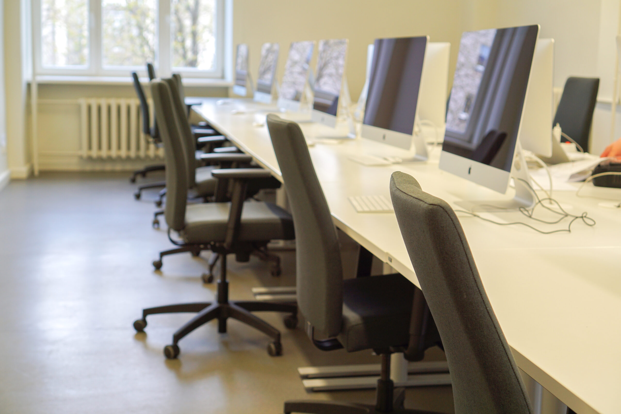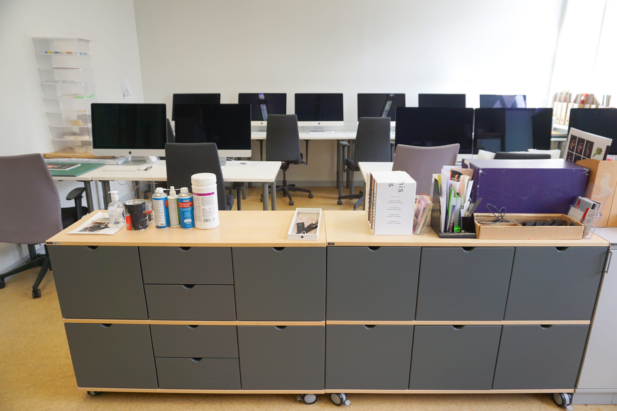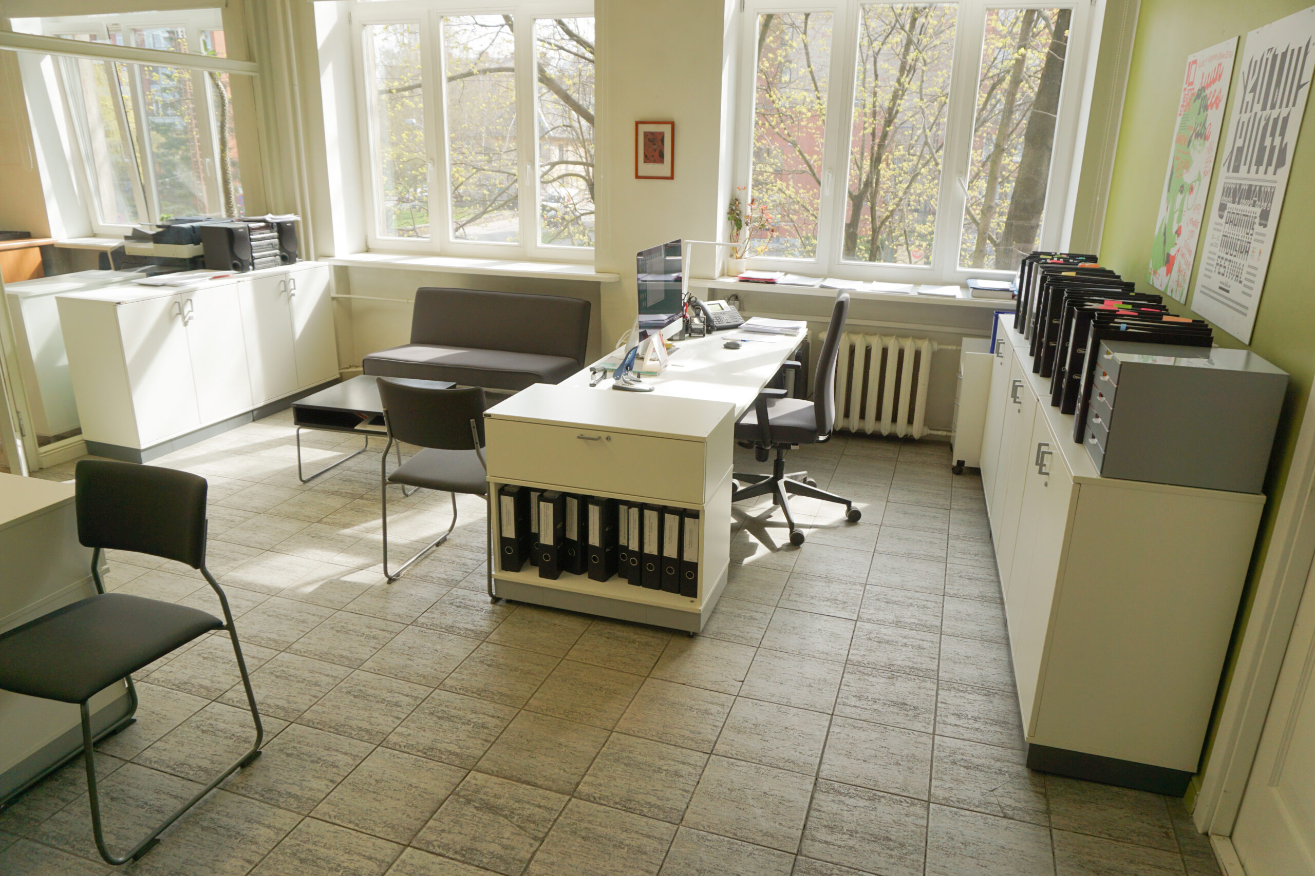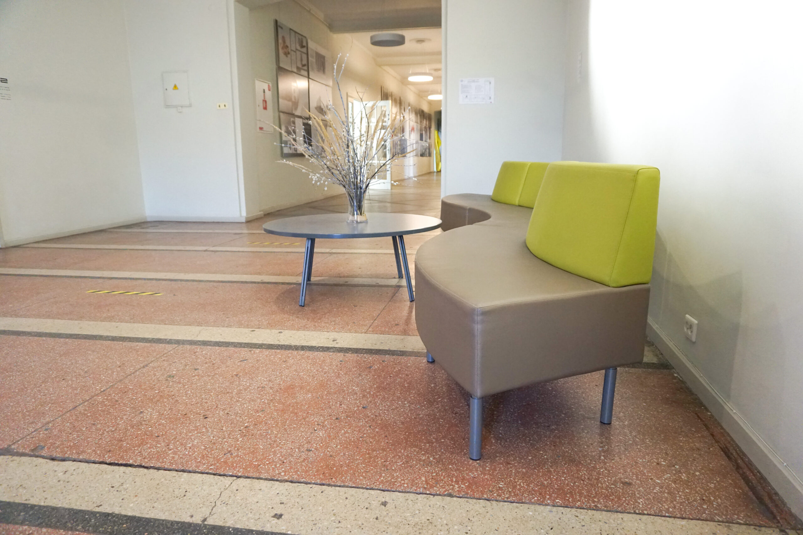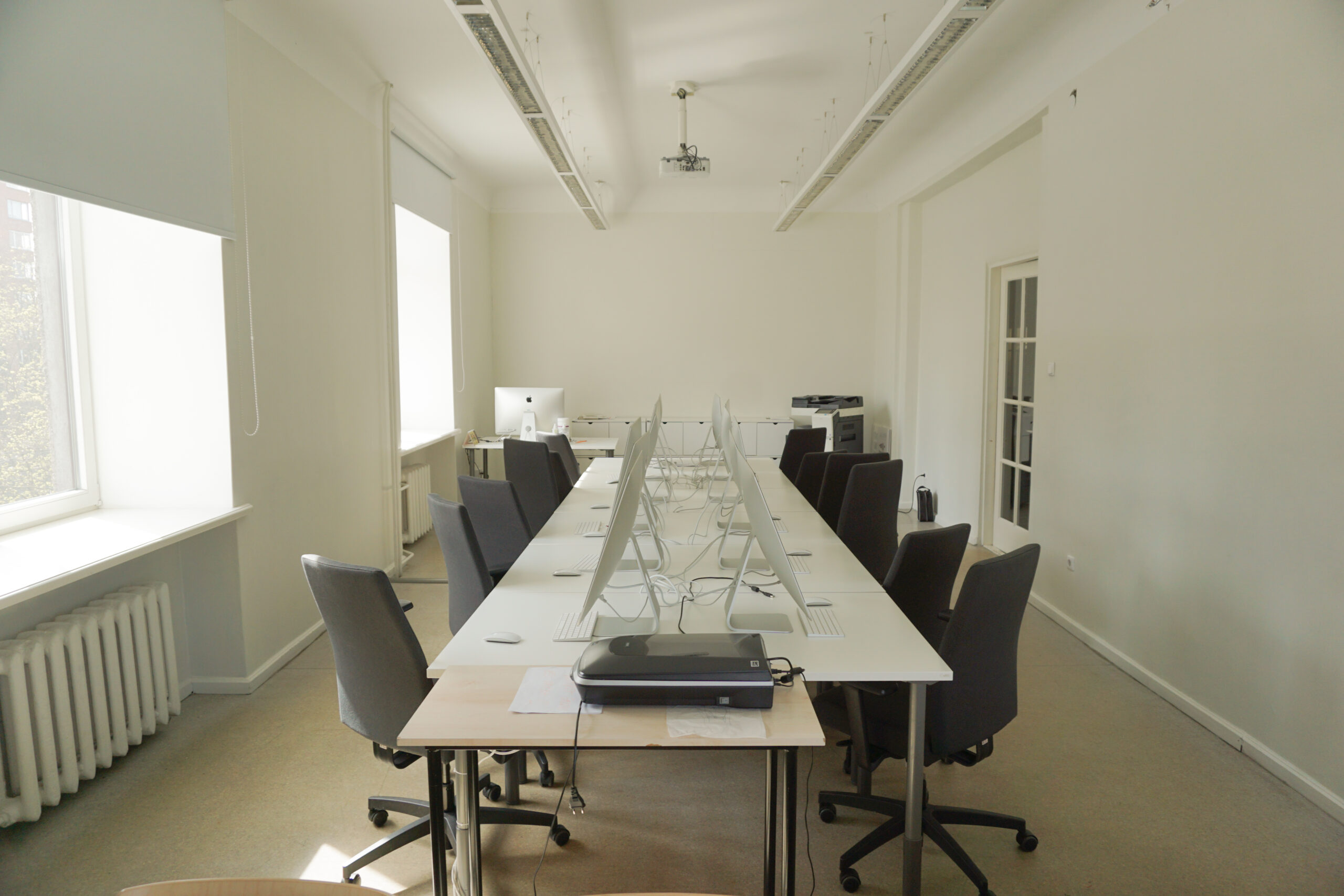 Rīgas Dizaina un mākslas vidusskolā iekārtotas mācību telpas, koridori, bibliotēka un administrācijas telpas.