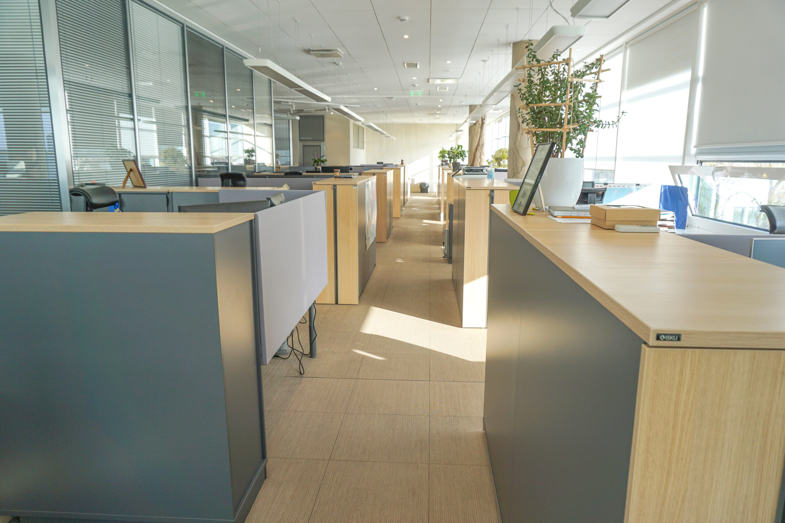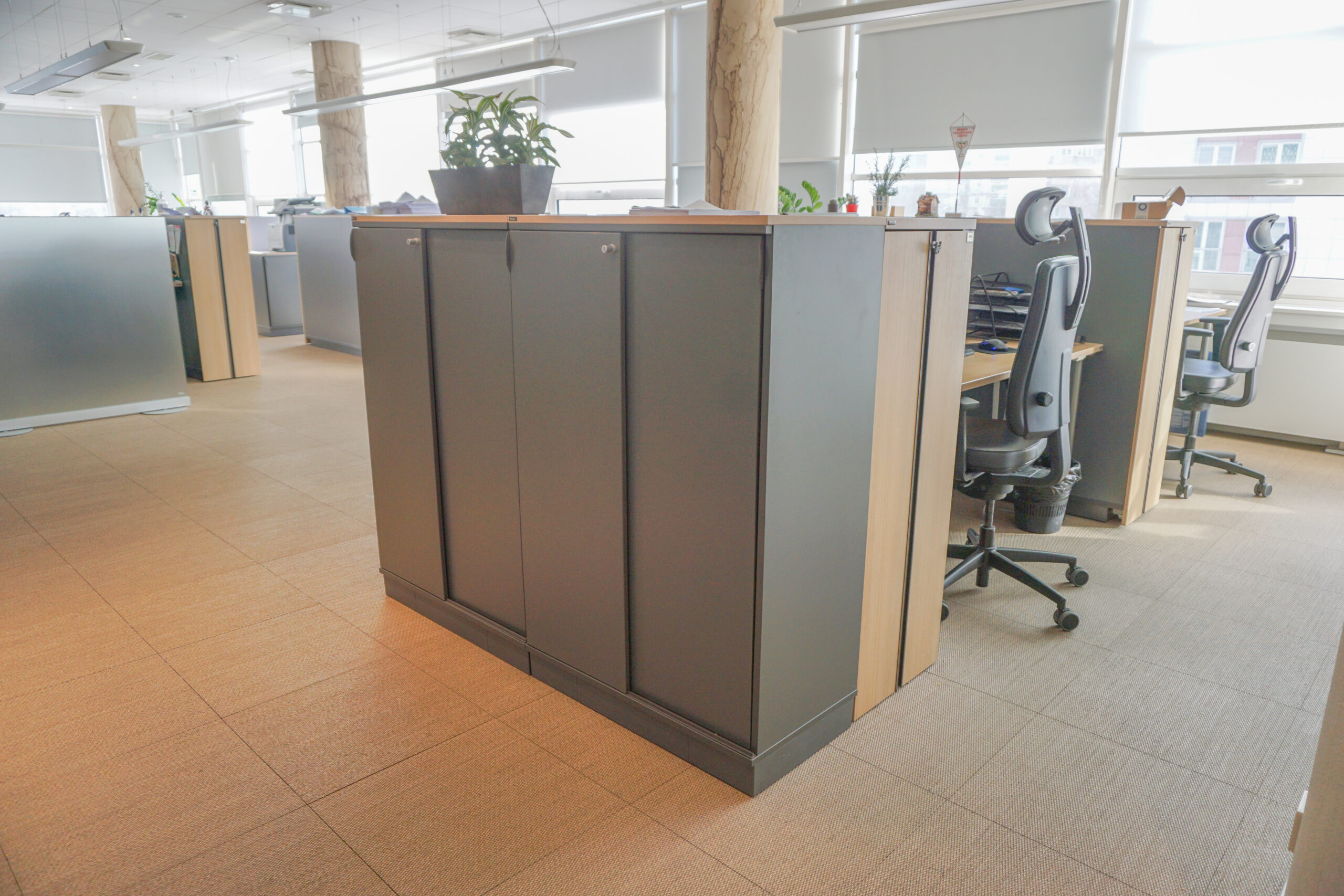 SIA Proks Holding birojs iekārtots atdalot darba vietas ar paneļiem un skapjiem, lai dabinieki var netraucēti strādāt. Katram darbiniekam blakus augstumā regulējamam galdam novietots parocīgais Tendo Tower skapis, kas kalpo gan kā ietilpīgs uzglabāšanas risinājums, gan aizslietnis.