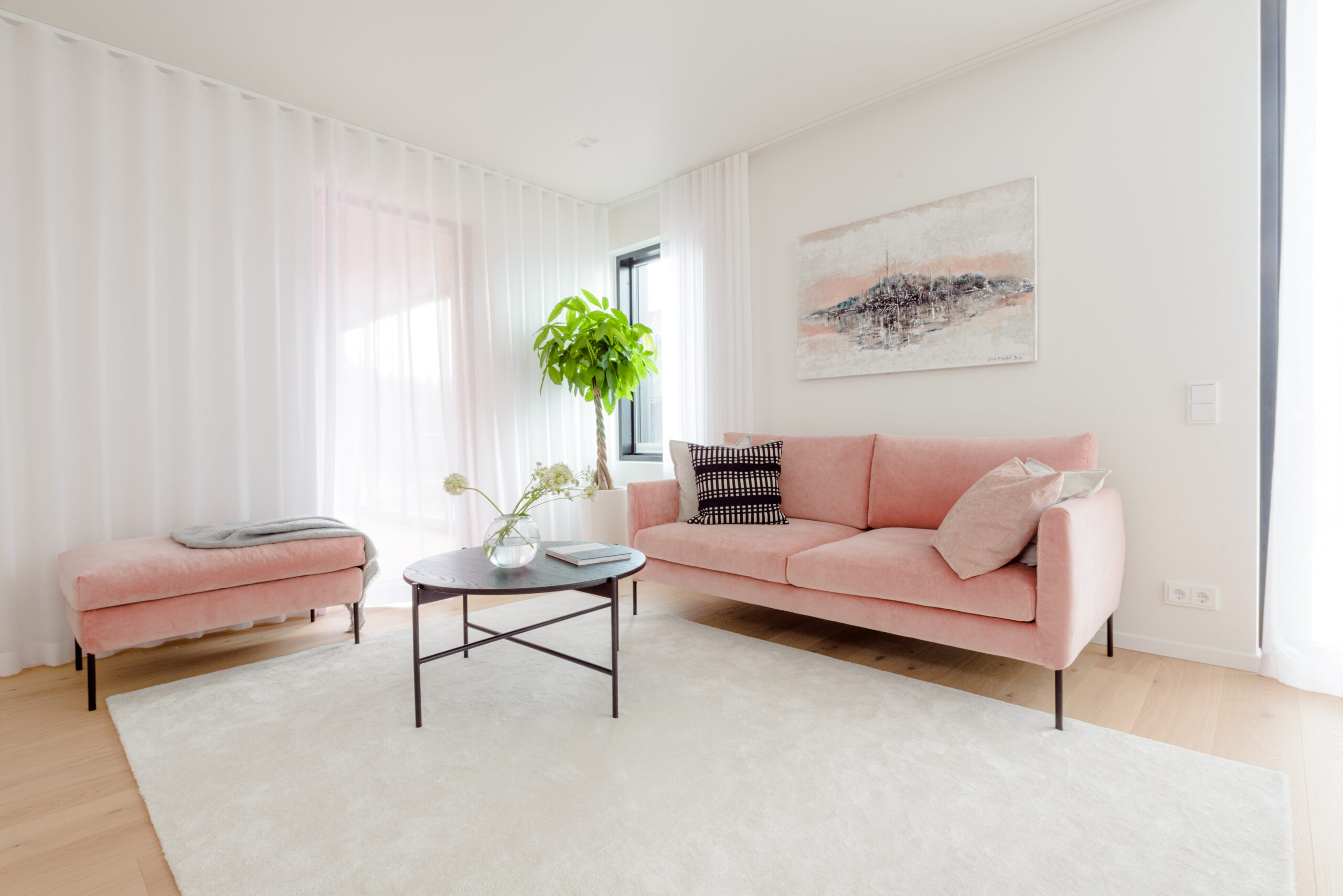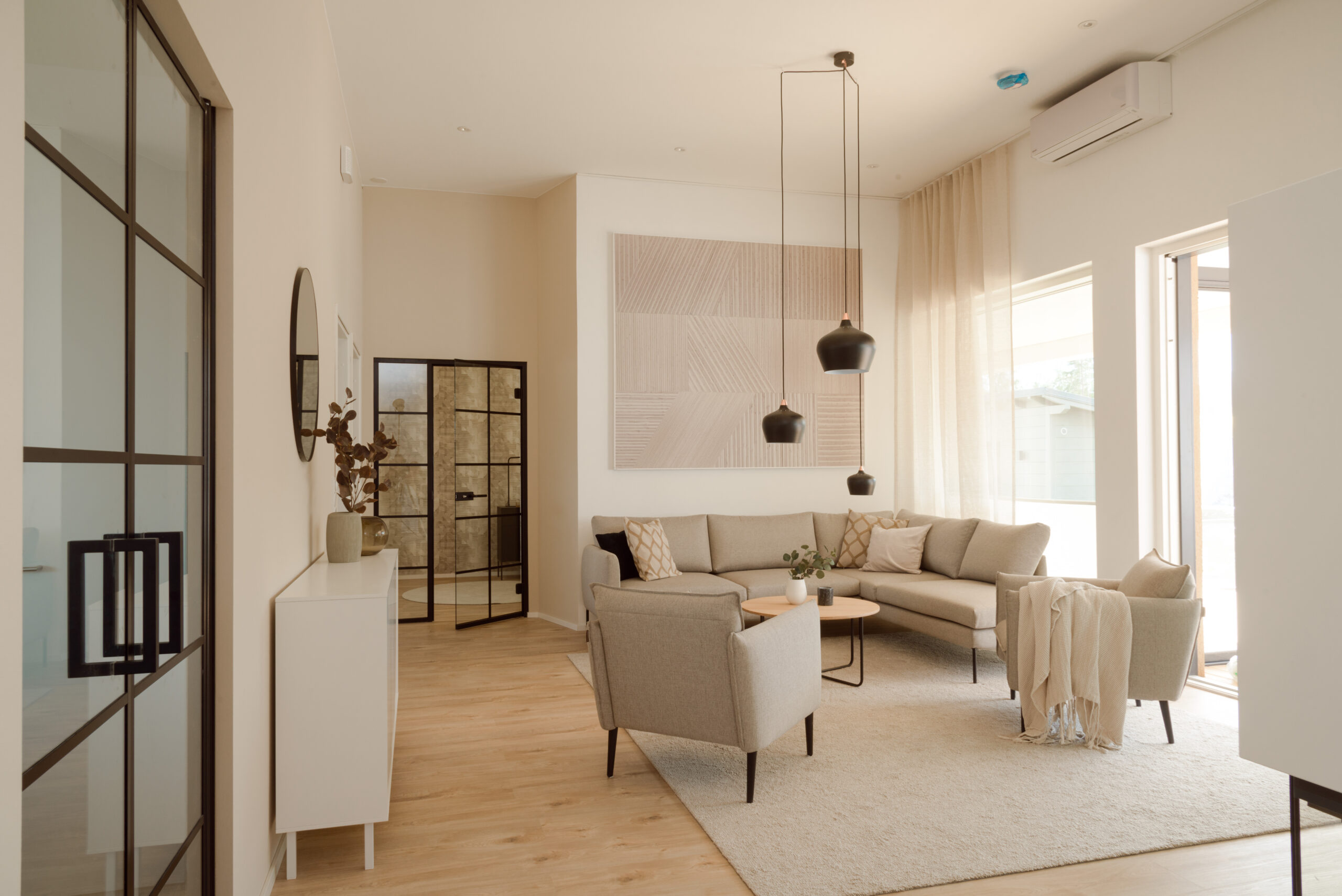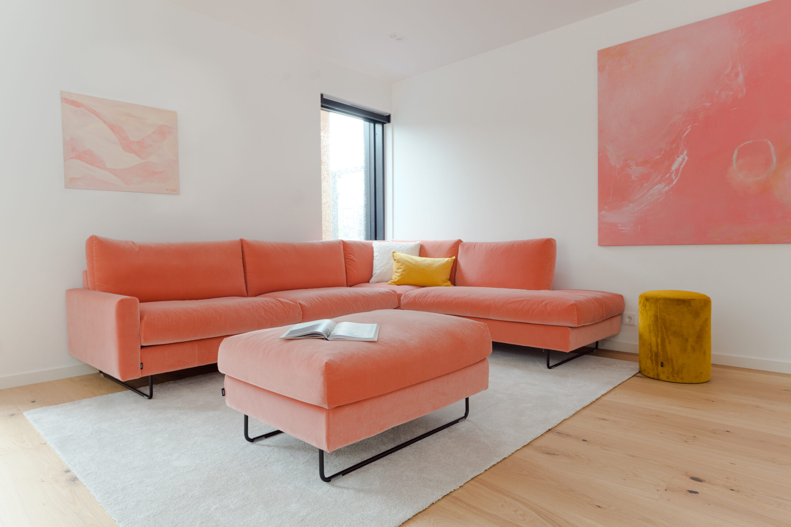 Viens no interjeriem tika veidots ģimenei ar diviem bērniem. Tajā iekļautas spilgtas un svaigas krāsas, kas kombinētas ar dabīgā koka elementiem.